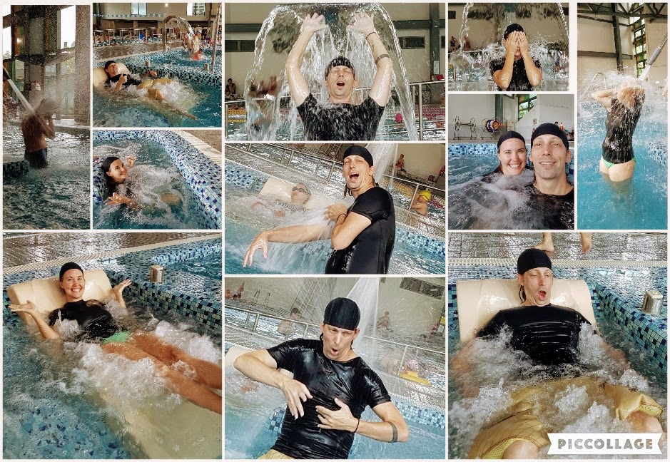 But the overcast day broke into rain. So…. we turned our attention to the huge swimming pool complex we’d noticed next to the Dahu MRT alongside the park. It just so happened that since we thought we were going to a waterfall we’d brought swimsuits with us! Needless to say we decided to try it out. The pool cost about $5 USD plus another couple dollars spent on buying our very own swimming caps (mandatory at most pools we’ve been to in Taiwan). With that we were given entrance into the outdoor lap pool & kids playing area, indoor lap pool, spa pool, sauna and steam rooms! As you can see bellow… we had a blast!