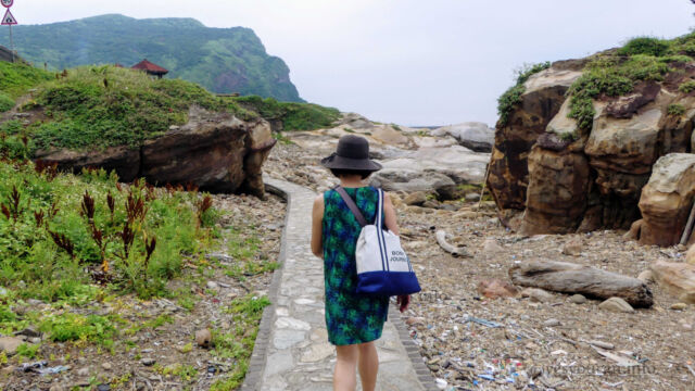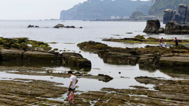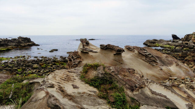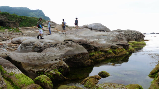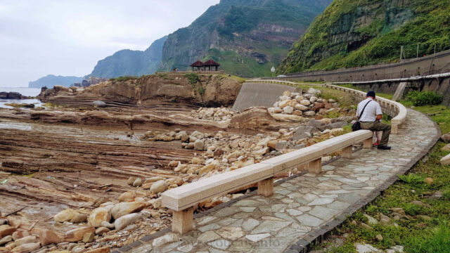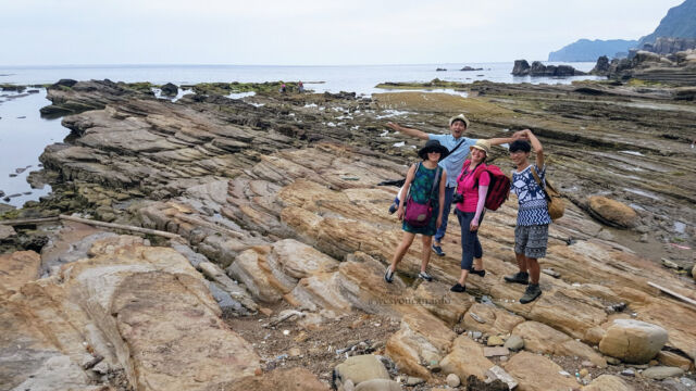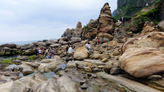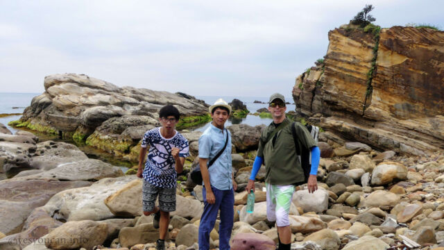 Enjoying Nanya Rock formation on our Taipei day tripFinally we returned to Ocean Love Dive club to shower up, return and repack things. And after our surprise but oh so welcome lunch, we headed back up to the bus stop to retrace our steps. I’d heard that just one stop back there were some interesting rock formations on the coast. And we agreed to give it a look before making the full return home.