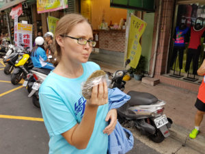 Walking in almost any busy pedestrian area will yield some interesting street vendors. Lots of people might be worried about hygiene and “content.” We have never had any problems in Taiwan so far. I have tried many of the “meat on a stick” places, and Pauline of course sticks to vegetarian options. But there are also lots of snacks and other novelties to take note of. One of the best egg custard tarts I have ever tasted came literally through a hole in a wall.