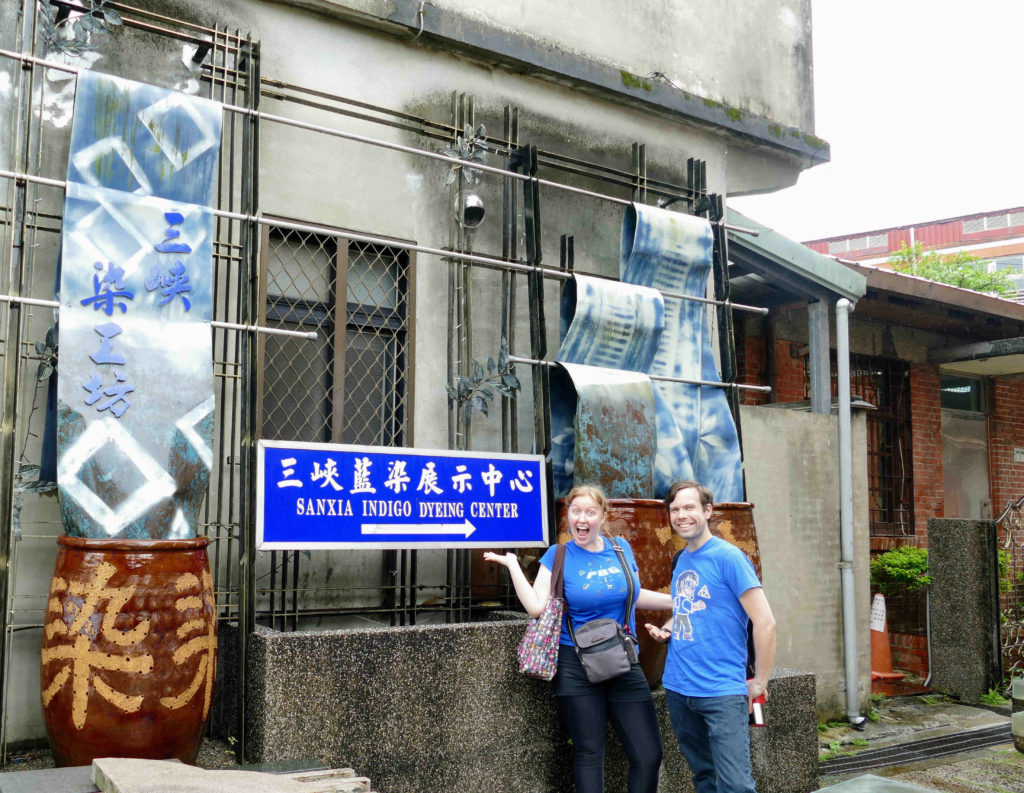 Three years into our life in Taipei and we still haven’t run out of new things to do or places to see in this city! This weekend we hit Sanxia Old Street and tried our hand at indigo dying. It was a great outing, although morning rain prevented us from including Yingge’s Old Street and Ceramic museum in the tour. (So we’ll have to leave that for a future outing & blog post. 🙂 ) Still, we packed in a very full and fun afternoon outing to Sanxia, which we’d highly suggest to anyone!